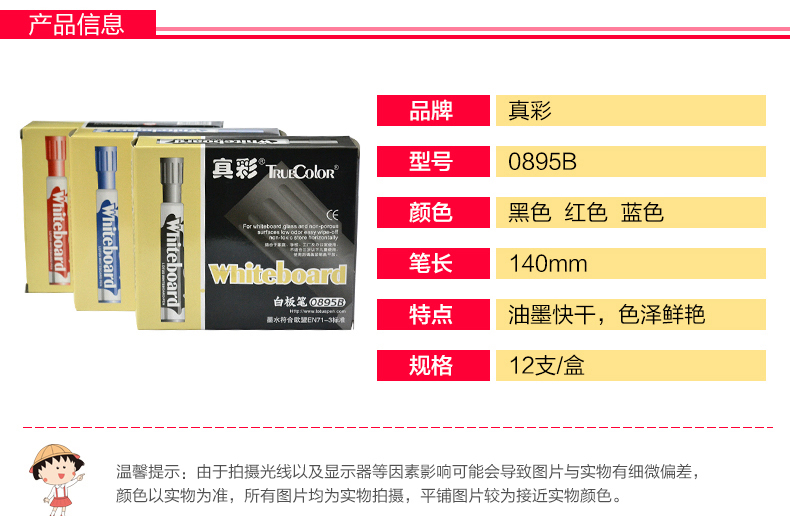 首页 > 办公文具 > 书写用品 > 白板笔 > 真彩乐美 单头白板笔 可擦笔 大头笔#0895B,黑色