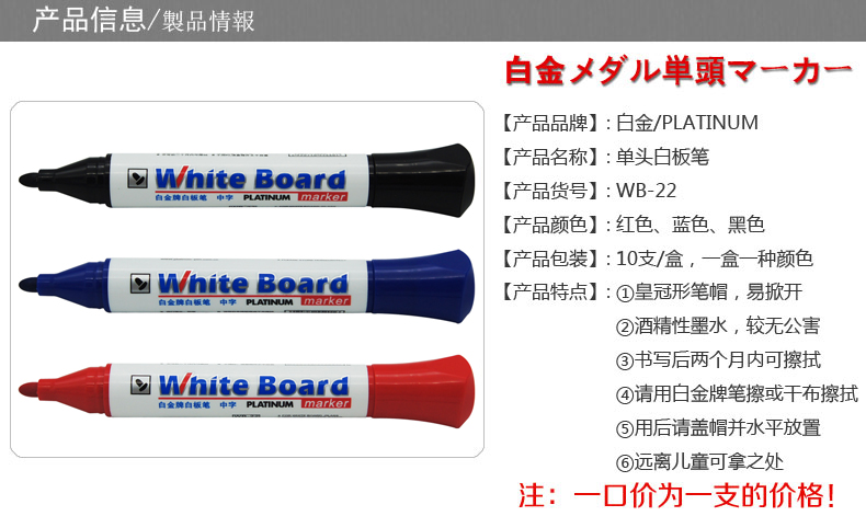 首页 > 办公文具 > 书写用品 > 白板笔 > 白金 经济型白板笔 可擦白板专用笔大头笔#WB-222,红色,10支装