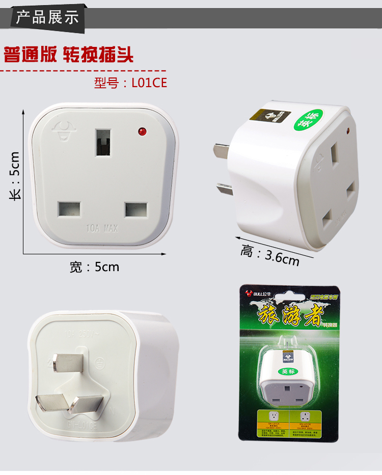 首页 > 日用/食品 > 日常用品 > 插座 > 公牛牌 港版电源转换器 转换头电源插头#L01CE
