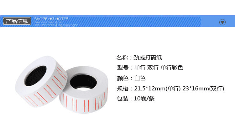首页 > 办公文具 > 薄本便签 > 打码机/纸 > 劲威 双行打码纸 双排标价纸 价格标签纸