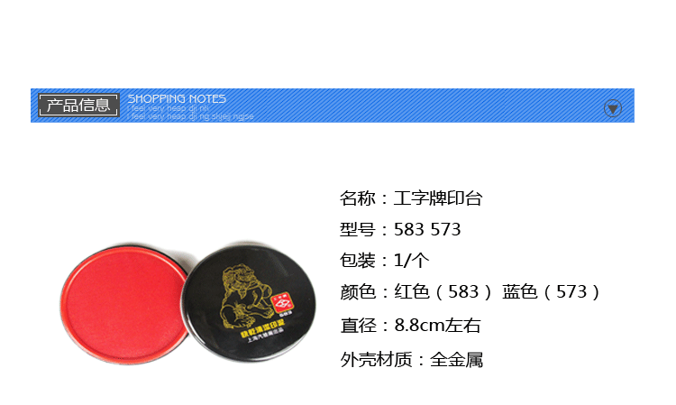首页 > 办公文具 > 财务用品 > 印台 > 上海工字牌 快干印台 直径88mm快干清洁印泥#573,蓝色