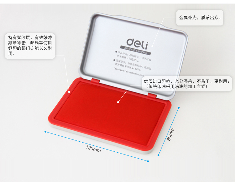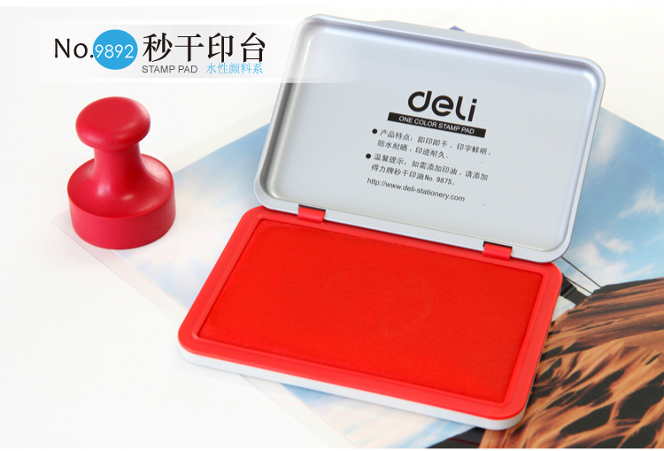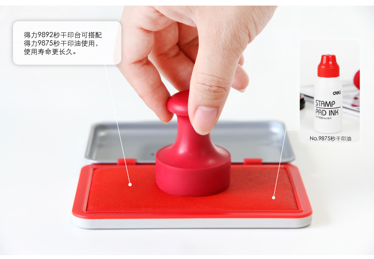 首页 > 办公文具 > 财务用品 > 印台 > 得力(Deli) 速干印台财务秒干印台 金属外壳不晕染#9892,红色