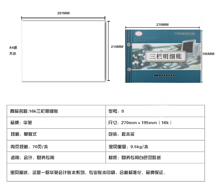 华苑 16K三栏账簿 三栏明细账 财务用品,70页