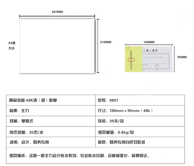 主力牌 48K请款单#0807,30页*20本装