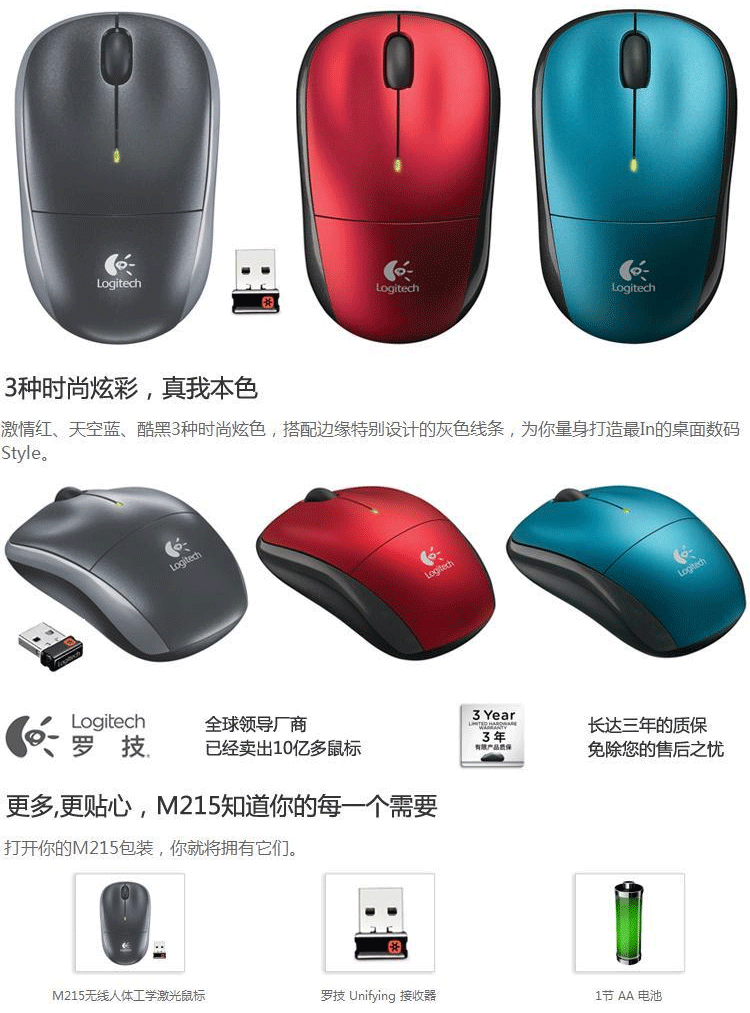 罗技(Logtitech) 笔记本/台式鼠标 无线鼠标#M215