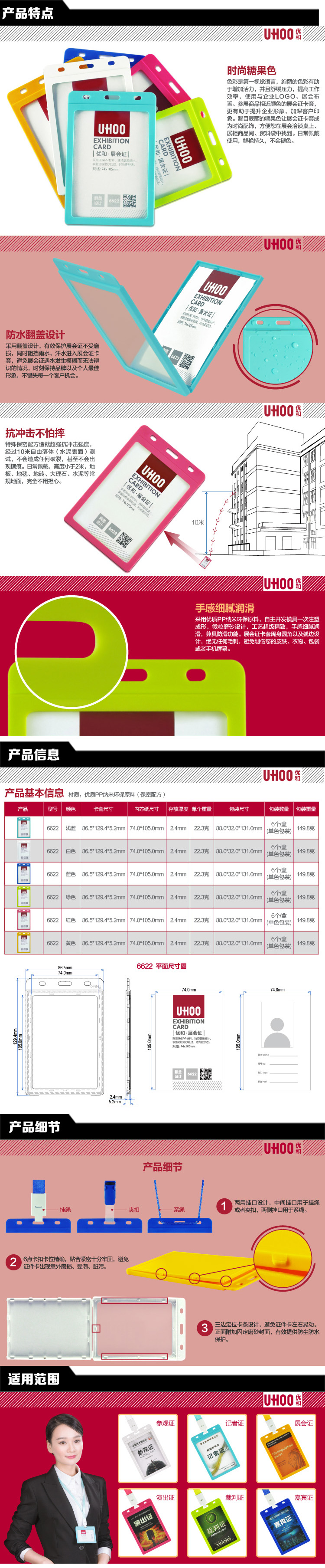 首页 > 办公文具 > 展示用品 > 工作卡 > 优和UHOO 糖果6色证件卡#6622,竖式