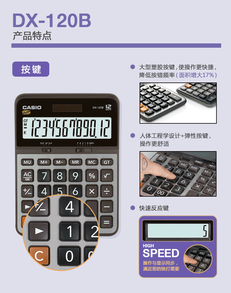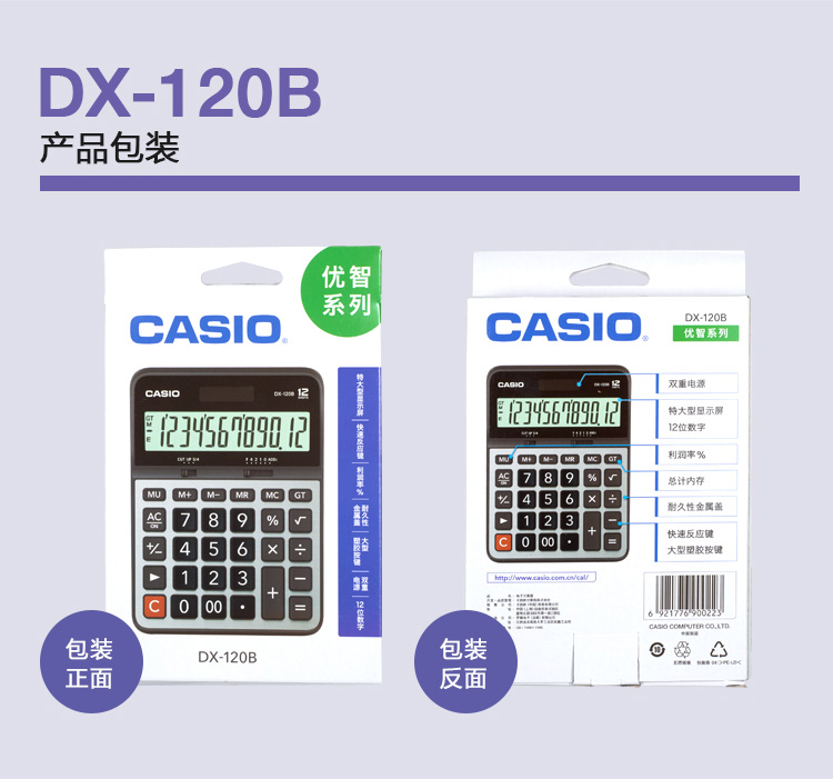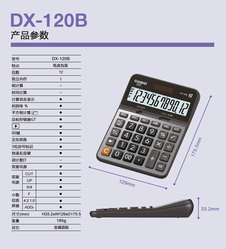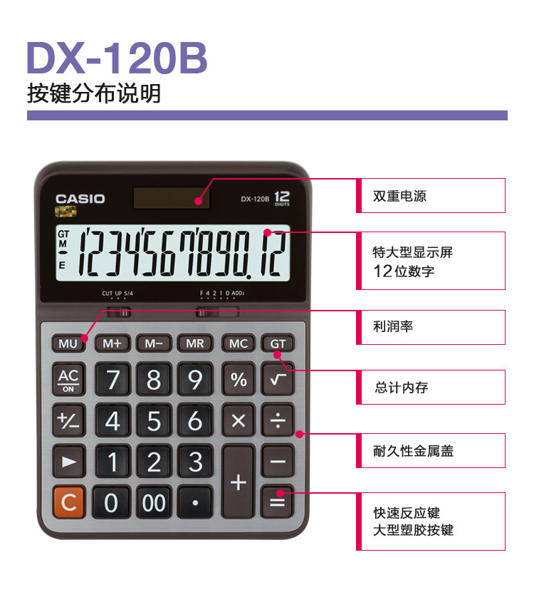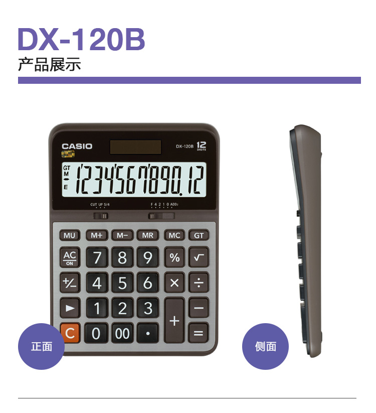卡西欧(CASIO) 12位金属板计算器 商务办公计算器#DX-120S